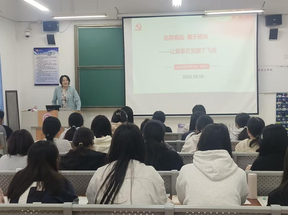 10月15日,院长傅金兰开展主题为“志存高远敢于担当——让青春在党旗下飞扬”的党课培训。院长傅金兰结合党的百年奋斗历程,深入阐述了“志存高远敢于担当”的深刻内涵。她指出,中国共产党自成立以来,始终坚守为中国人民谋幸福、为中华民族谋复兴的初心使命,一代又一代的共产党人以坚定的理想信念,为国家和民族的事业不懈奋斗。最后院长傅金兰强调,作为新时代的党员,必须志存高远,将个人的理想追求与党的事业、国家的发展紧密结合起来,以实现中华民族伟大复兴为己任,树立远大的目标和抱负。