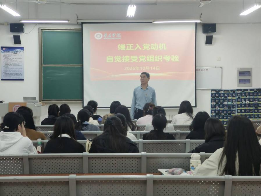 10月14日,党委书记刘玉宝开展主题为“端正入党动机,自觉接受党组织考验”的党课培训。刘玉宝书记先从成为一名共产党员的过程开始讲述,即第一,端正入党动机;第二,自觉接受党组织的培养、教育和考察;第三,严格履行入党手续。期间,刘玉宝书记向同学们强调,成为优秀共产党员首先需要端正自己的入党动机,要认真学习党的基本理论,在实践中加强锻炼修养以及需要长期不断检查。一名合格的党员一定要做到“四个做到”:做到政治合格、做到执行纪律合格、做到品德合格、做到发挥作用合格。最后,刘玉宝书记对同学们送上真挚的祝福,希望同学们早日加入党组织,成为一名优秀的中国共产党员。