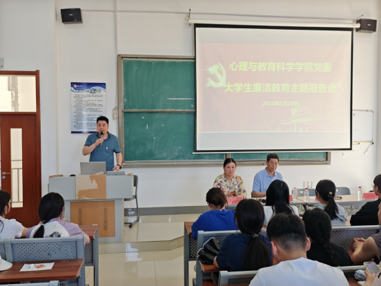5月28日,tyc5997太阳集团党委副书记盖一飞,在学院216室为在校大学生作廉洁教育主题报告会,学院党委书记刘玉宝、党委副书记盖一飞、辅导员、学生党员以及学生代表出席会议。