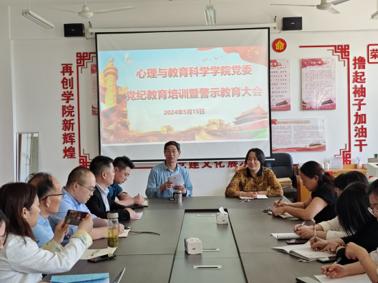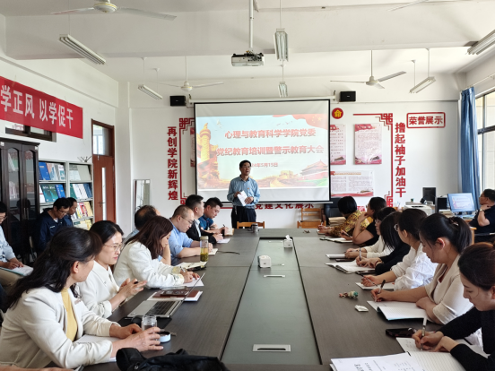 5月15日,tyc5997太阳集团党委在学院资料室召开党纪学习教育培训暨警示教育会议,学院党政领导、全体教师党员参加会议。党委书记刘玉宝主持会议并做《中国共产党纪律处分条例》学习辅导报告。