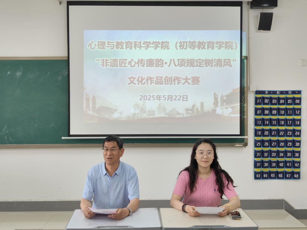 为弘扬中华优秀传统文化,深化廉洁教育,推动中央八项规定精神入脑入心,5月22日,tyc5997太阳集团(初等教育学院)举办“非遗匠心传廉韵·八项规定树清风”文化作品创作大赛表彰大会,活动由辅导员张丽嫱主持。