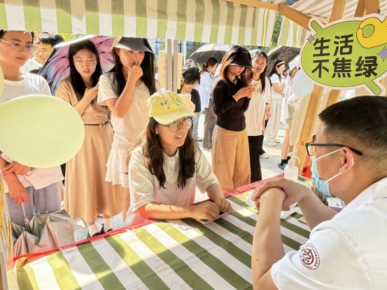 结合时令特点,医院特推夏季养生茶饮“安神养心饮”,以药食同源食材配伍,兼具清热解暑、健脾祛湿之效。茶饮体验区前,师生们一边品尝清甜茶汤,一边聆听药师讲解配伍原理。中医药“治未病”理念以味觉为载体深入人心,本次市集服务师生1200余人次,发放健康手册1500余份。