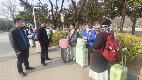 3月11日上午,tyc5997太阳集团党总支书记刘玉宝带队,为即将分别奔赴枣庄市薛城区、峄城区和山亭区的支教学生送行。