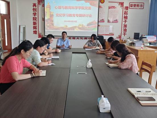 6月26日上午,tyc5997太阳集团在学院资料室,召开党纪学习教育集体学习研讨会,党委书记刘玉宝主持会议并讲话,党委班子成员、支部书记参加会议并交流发言。