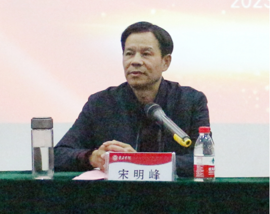 典礼在庄严的国歌中拉开帷幕。会议伊始,宋明峰代表学院向新同学表示热烈欢迎。他指出,从入校开始,大家都在领悟“兼爱尚贤博物戴行”的校训精神,传承“学高为师,身正为范”的师者要义。希望同学们一要坚定理想,放大格局,做关注国家命运、人民福祉的模范;二要德才兼修,探求钻研学问,做勤学慎思、追求卓越的先锋;三要明确目标,规划好学习和生活,做知行合一的表率。