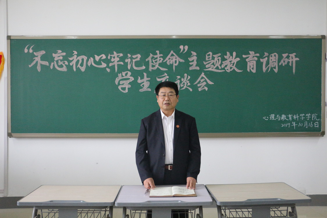 10月16日,我院于教师教育楼312室举行“不忘初心、牢记使命”主题教育蹲班调研学生座谈会。学院党总支书记赵荣军出席,2018级小学教育1班师生共三十余人参会。