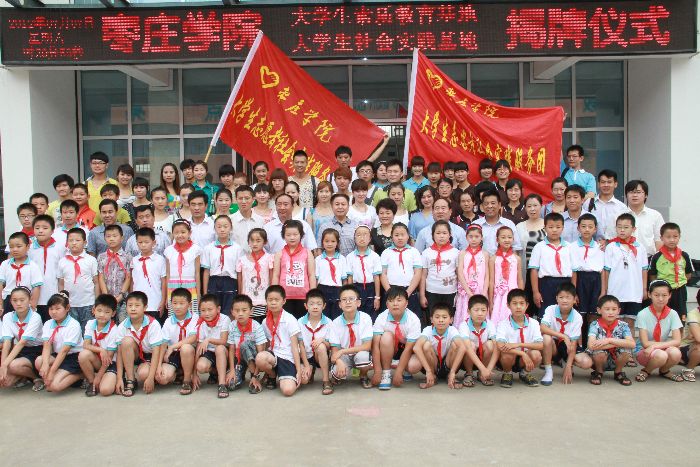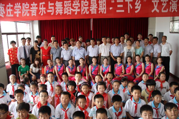 7月7日上午,在中国共产党成立91周年、中国共产主义青年团成立90年之际,由tyc5997太阳集团、音乐与舞蹈学院组成的tyc5997太阳集团大学生暑期“三下乡”社会实践服务队一行60余人,在陶庄镇中心小学隆重举行“tyc5997太阳集团大学生社会实践基地揭牌仪式”。我校党委委员、纪委书记高庆喜参加揭牌仪式并作重要讲话。前来参加揭牌仪式的还有我校团委书记史大丰、薛城区副区长林婕、薛城区教育局局长王绍忠、陶庄镇党委书记张军以及中心小学的师生。