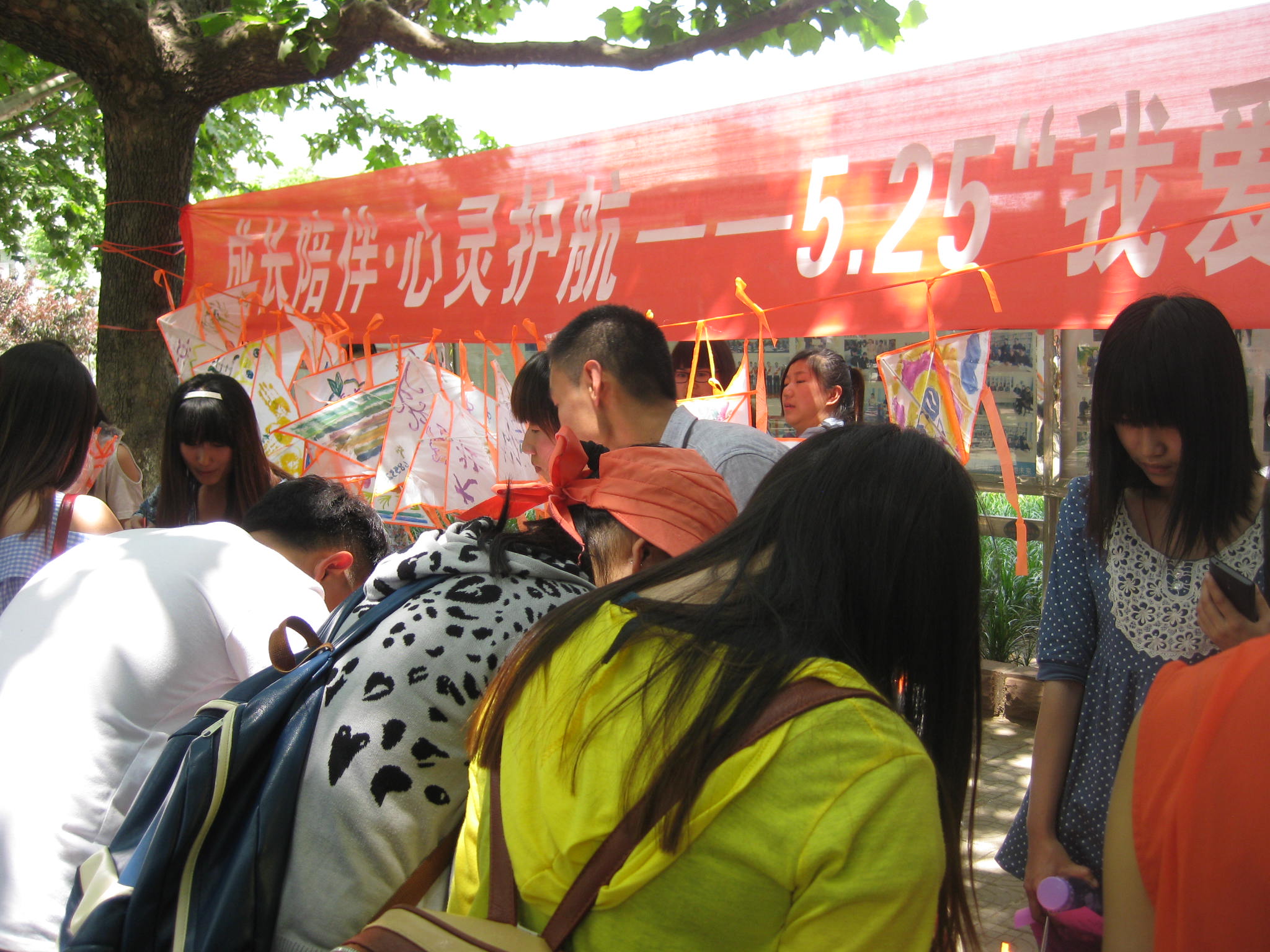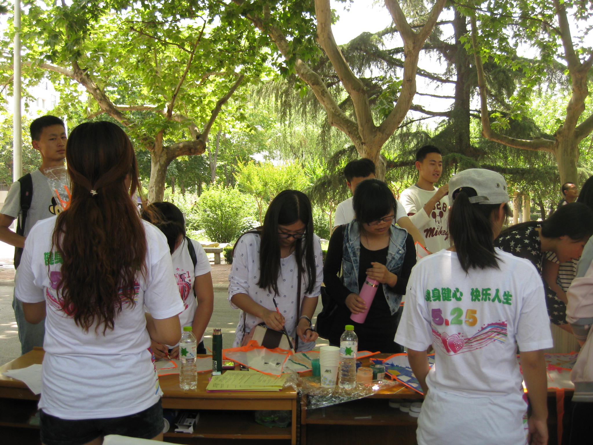 我校十分重视学生的心理健康教育工作,已连续十年举办大学生心理健康节,活动由tyc5997太阳集团与校心理健康教育中心承办,校团委、校学工处等部门予以通力协助。今年的“5.25”主题为“成长陪伴•心灵护航”,共有心理知识宣传、心理情景剧展演、心理征文比赛、心理微博原创、心里说吧、团体心理辅导等九大环节。活动形式新颖,氛围轻松和谐,过程妙趣横生,吸引了众多师生参与。5月20日举办的心理沙龙采用团体互动的形式,通过情绪魔方、欢乐踩气球等游戏使同学们轻松学会了情绪调控;5月21日的风筝涂鸦大赛则以时尚涂鸦的形式,带动同学们画出创意、画出心情、画出健康,推动了校园正向能量的传递。