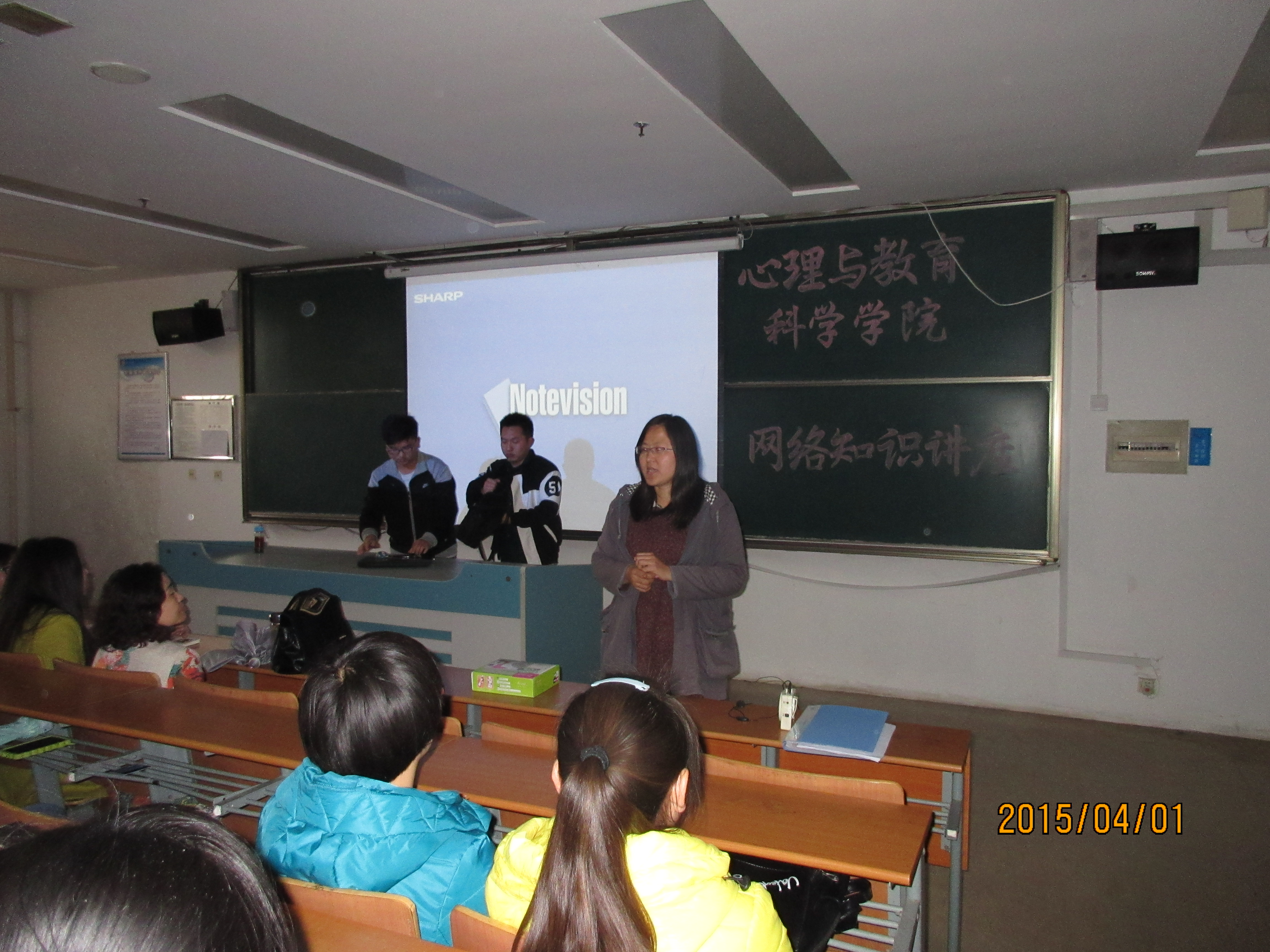 为增强大学生对网络知识的了解,营造安全网络氛围,tyc5997太阳集团于2015年4月1日3时在综合楼1113举行了“网络知识讲座”活动,活动由网络部王伟康同学进行讲解,韩建敏老师、孙星老师、赵新老师出席了本次活动。