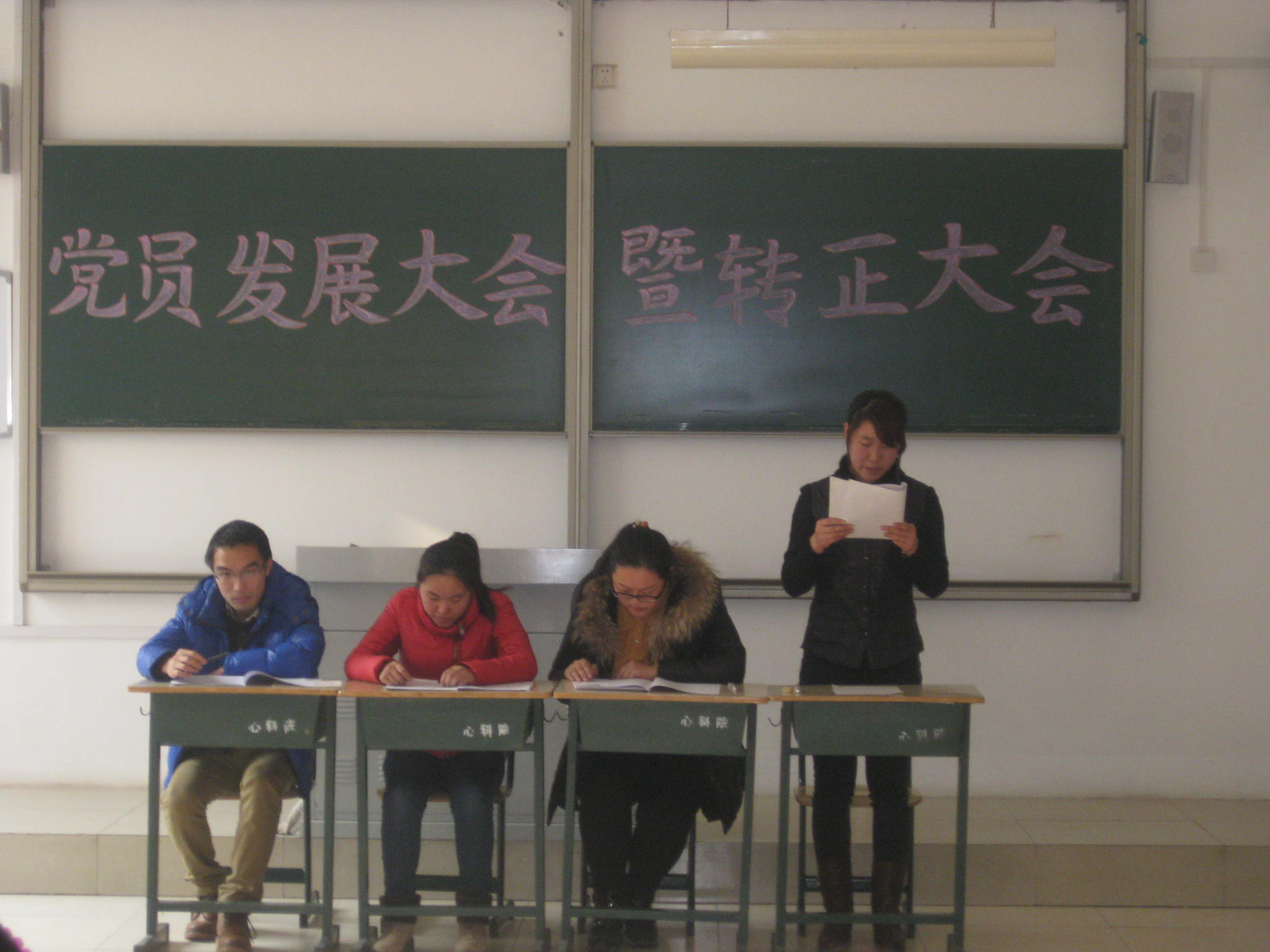 tyc5997太阳集团于2013年12月4日,在2315室召开学生党员发展暨预备党员转正大会。心科院学生党支部全体成员、预备党员申请人及预备党员转正申请人参加了此次会议,大会由党总支书记焦爱民同志主持。