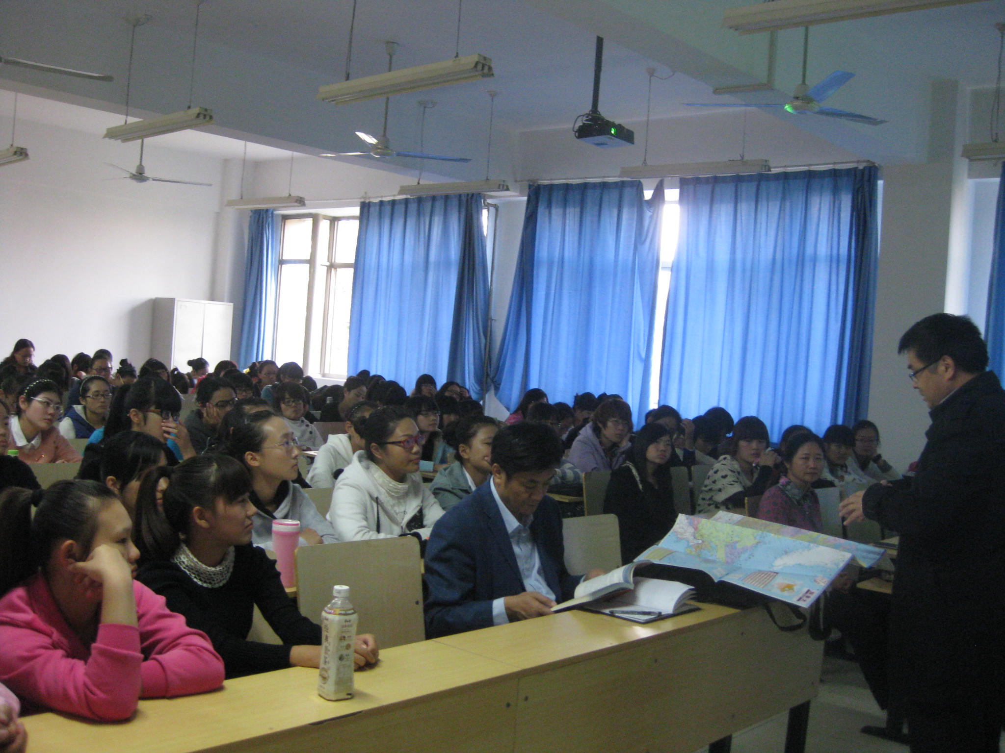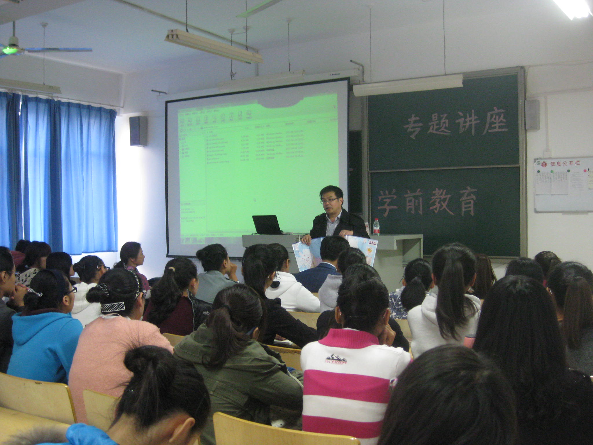 首先,刘旭教授就加拿大的人居环境及北方学院的概况入手,通过多媒体演示,向师生展示了加方学校的优美图景,并赠送了加拿大地图与书籍。随后,他结合中、加两国学前教育才培养的差异性,提出了中、加课程合作所采取的“2+1”模式。介绍了学生赴加拿大做交换生将享受到优厚的福利待遇,为同学们描绘了专业发展的良好前景。同时,他也指出赴加拿大学习应考虑英语水平与家庭经济承受能力等多方面情况。巴岩通过简短的视频对加拿大文化进行阐述,并从投资收益长期性和人生经历多样性角度对中、加课程做了进一步说明。最后,中、加双方师生进行了答疑互动,对该项目有了更全面的理解。