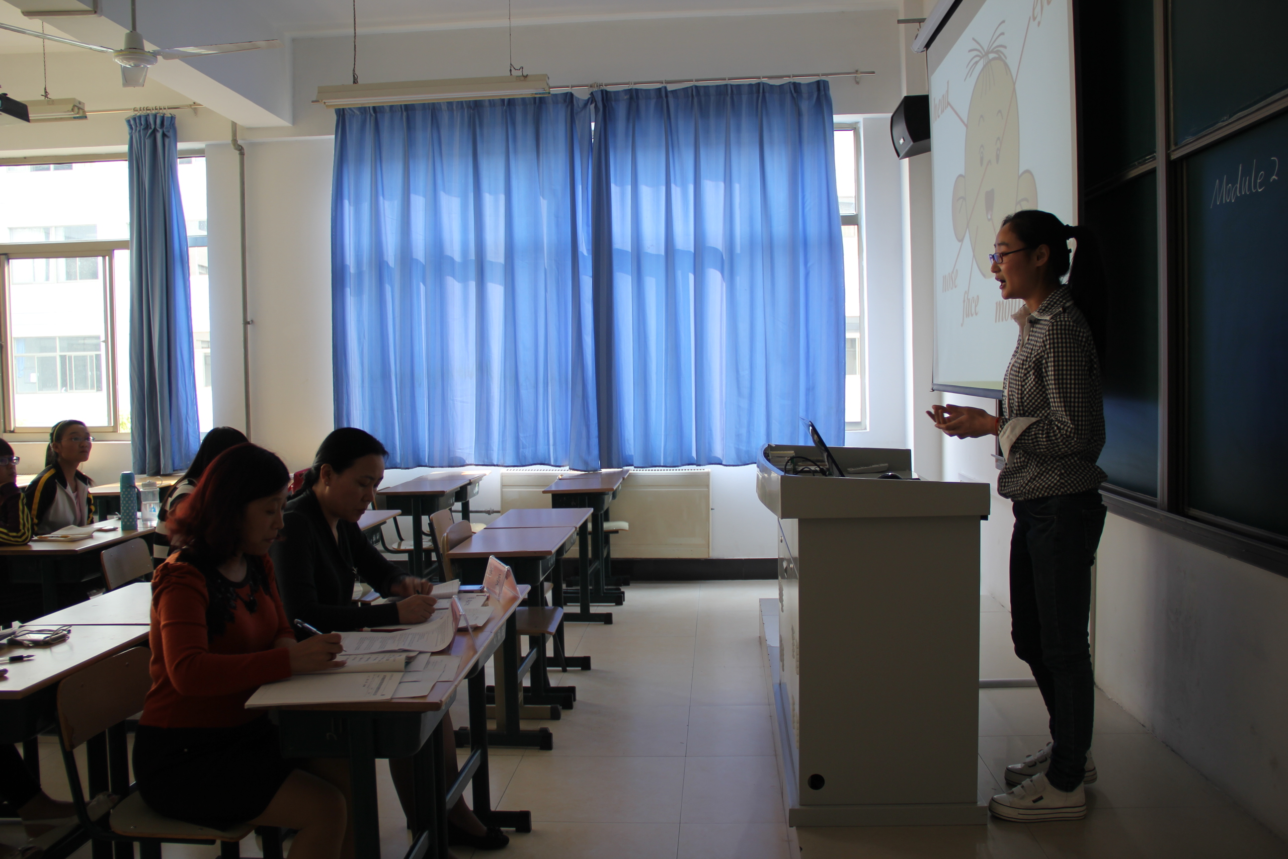 本次比赛分为语文组、数学组、英语组三个参赛小组,评委由tyc5997太阳集团的安洪涛、朱梅等六位优秀而富有经验的老师担任。比赛中对参赛选手的教师口语规范、授课内容设计、重难点把握、教法学法、多媒体使用、板书设计等方面进行全面考察。各参赛选手准备充分,课堂教学目的表达明确,教学思路阐述清晰,教学过程设计合理,语言表达准确精炼。选手流畅的讲解、优美的板书、漂亮的PPT制作、端庄大方的姿态赢得在场观众的阵阵掌声,展现了学子们良好的教学技能和教学风采。评委老师们也提出了相应建议,使同学们从业素质得到了进一步提升。