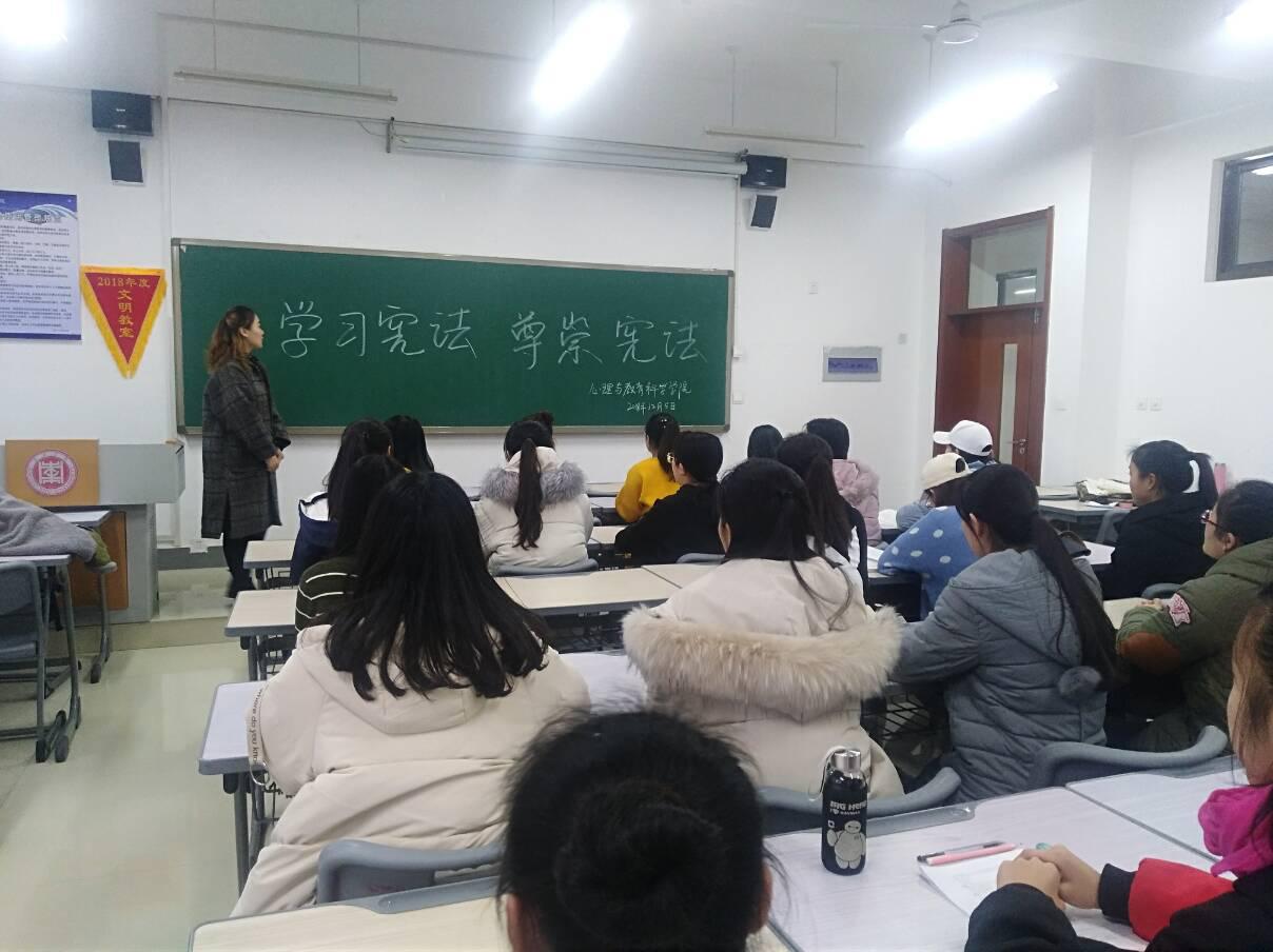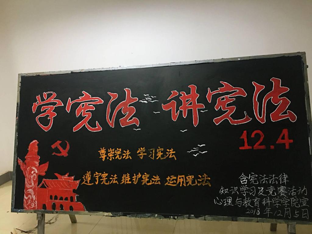此次宣传活动以“尊崇宪法、学习宪法、遵守宪法、维护宪法、运用宪法”为主题,结合《2018年国家宪法日暨全国法制宣传日系列宣传活动的活动方案》,分为二个环节进行开展。一是各班级组织召开“学习宪法,尊崇宪法”主题班会,通过观看宪法和法制类视频,列举法制事例,让同学们了解国家宪法和法制有关内容。二是绘制宪法和法制有关的宣传板,以图文结合的形式向师生宣传国家宪法和法制有关内容。宣传活动总体上取得了很好的效果,同学们纷纷表示:“以后我们会主动学习更多的宪法内容,尊崇宪法权威,用自己的一份力量推动中国法制建设更好更快地发展。”