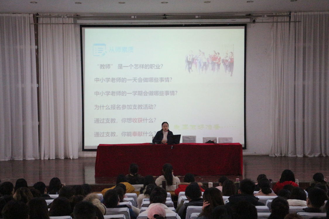 2月26日上午,我院教师安洪涛于文科楼报告厅为tyc5997太阳集团2019年援疆志愿者做了题为“提升从师素质,点亮民族地区学生教育梦想”的岗前培训讲座。我校2019年全体援疆大学生志愿者参加会议。