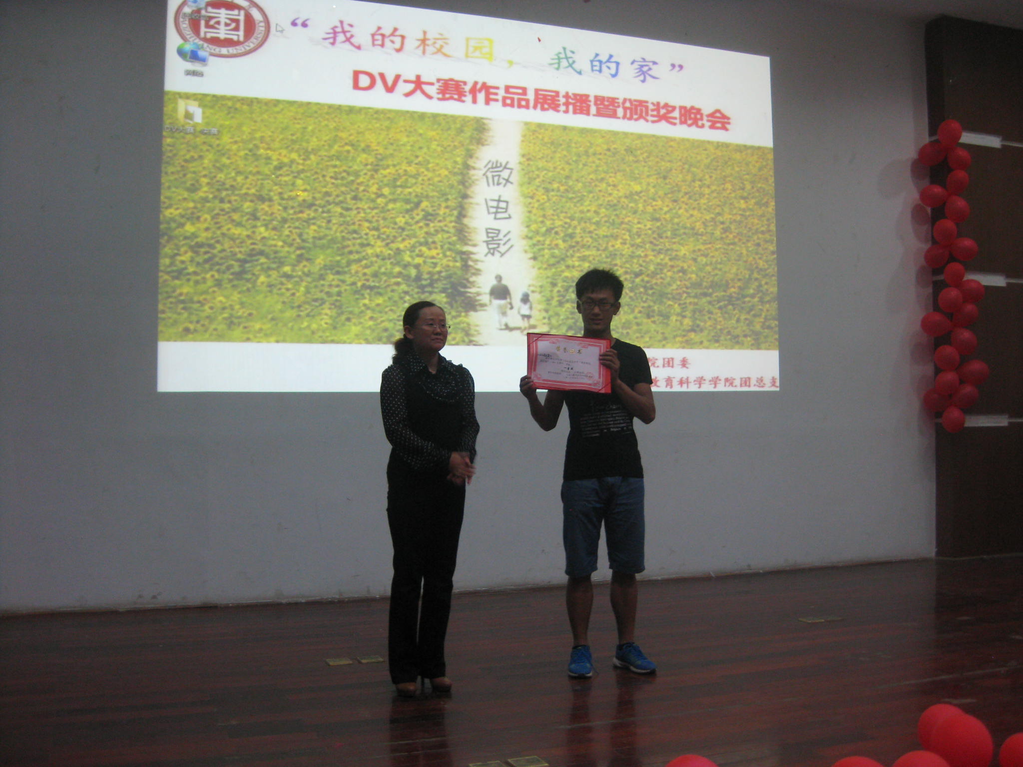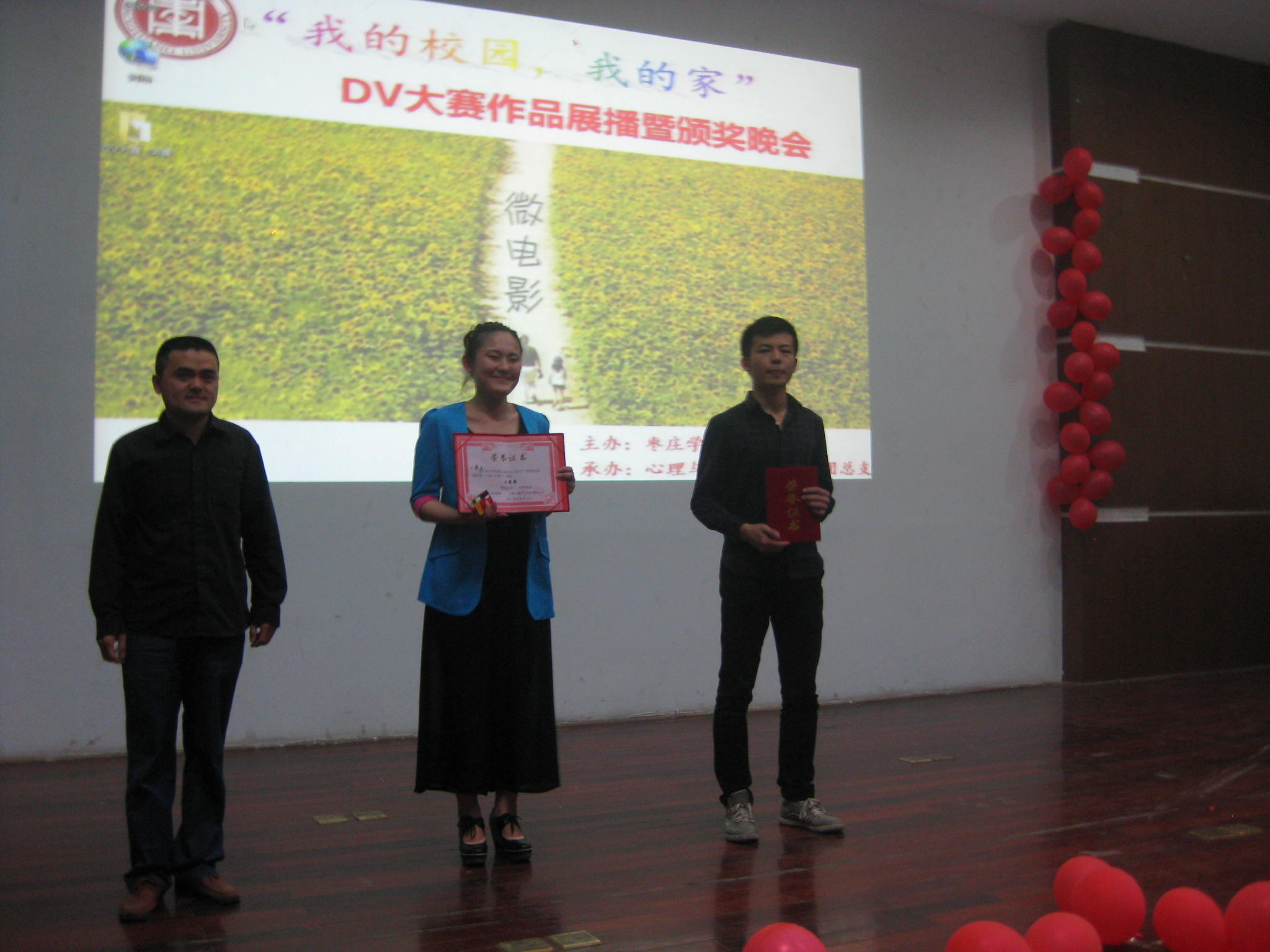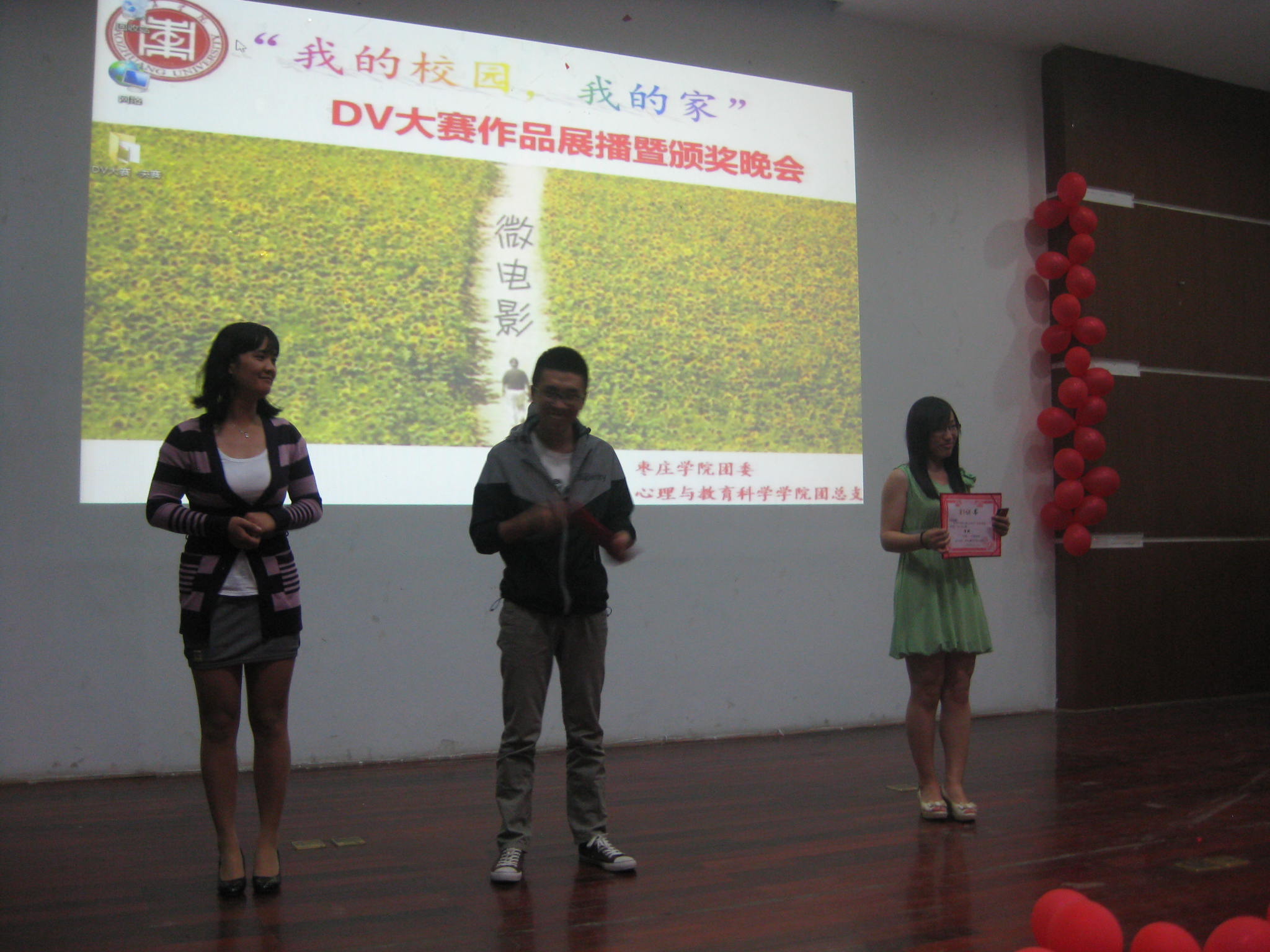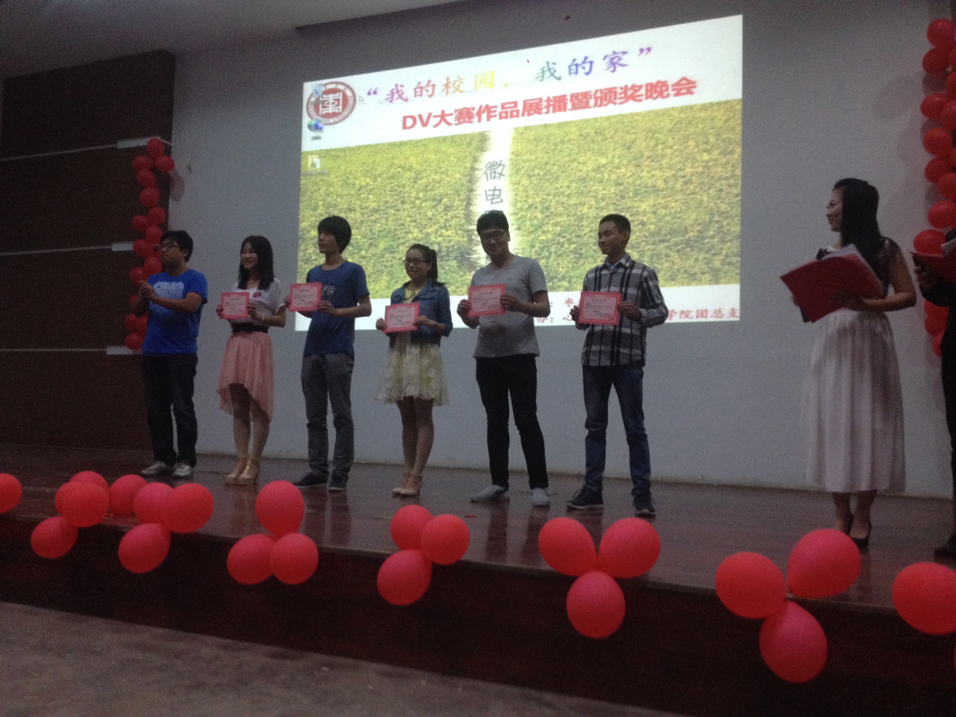 “用心灵捕捉、用影像赞美,秀出学校的与众不同,说出心中的无限感恩、美好展望”,由校团委主办,tyc5997太阳集团承办的 “我的校园——我的家” DV大赛获奖作品展播暨颁奖晚会于5月15日晚在文科楼报告厅举行。tyc5997太阳集团、旅游与资源管理学院、文学院、生命与科学学院、体育学院等多个学院的师生400余人参加了晚会。