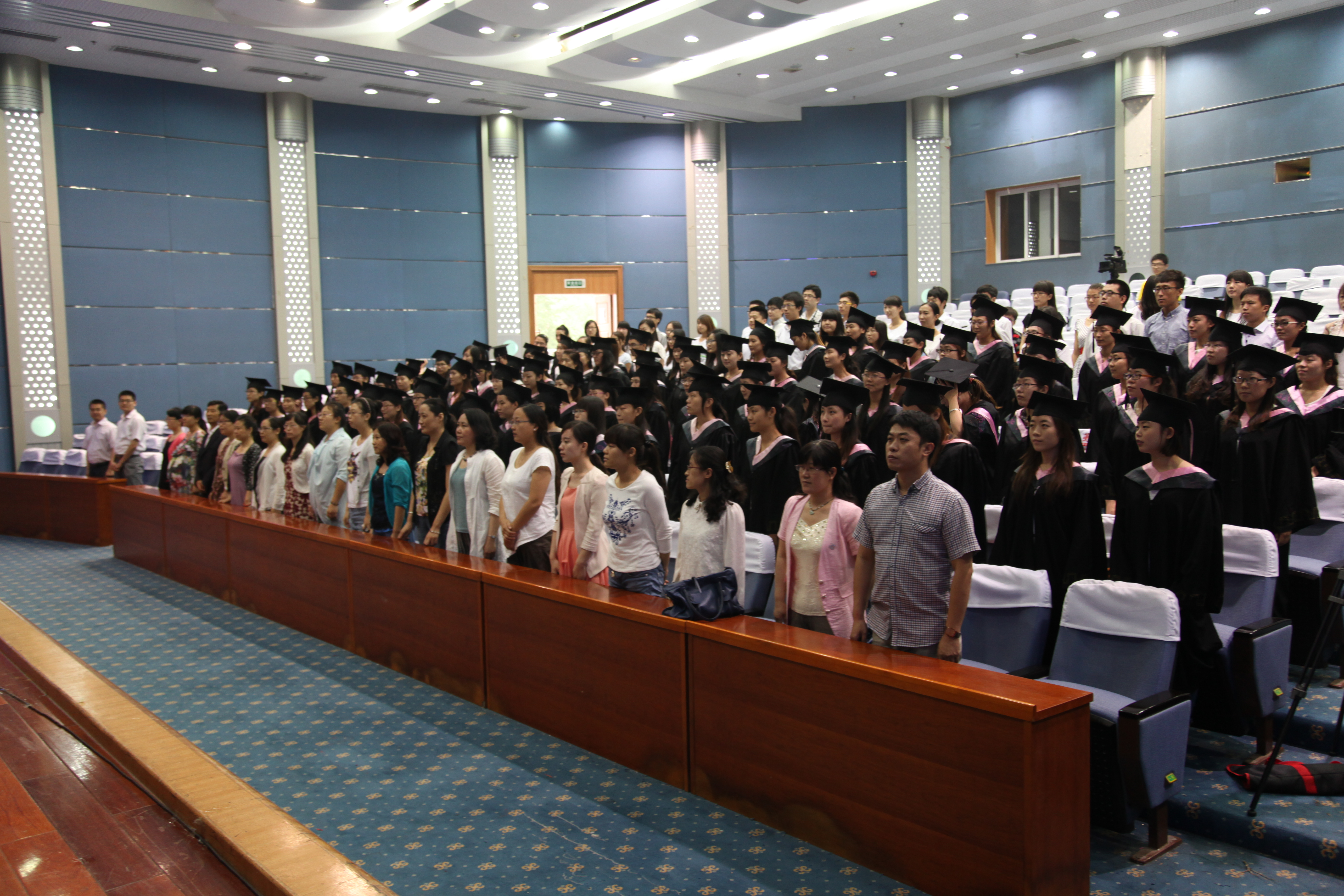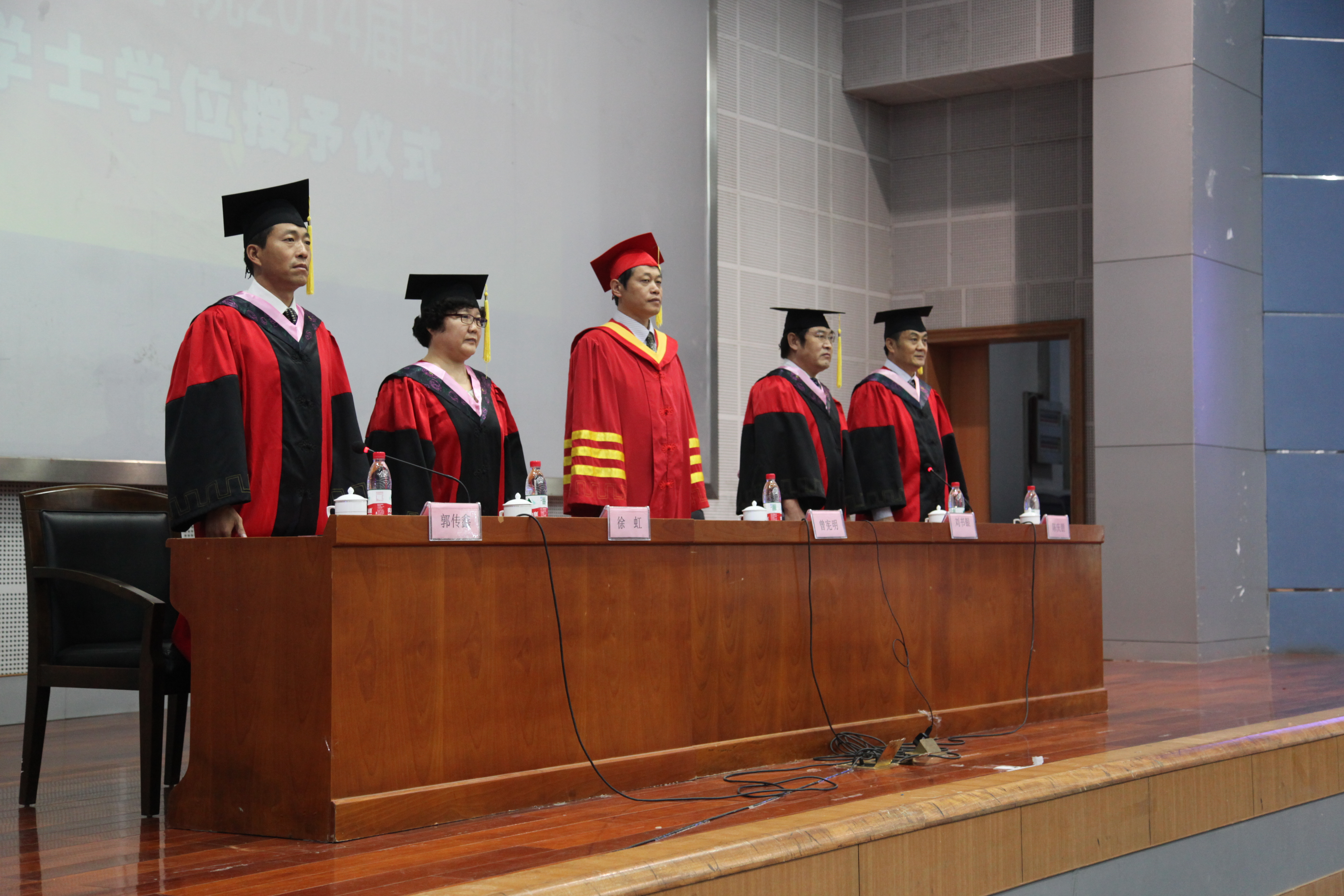 学士学位授予仪式在庄严的国歌声中式开始。 随后,在激扬欢快的《步步高》乐曲声和雷鸣般的掌声中,学士学位获得者依次登台,曾宪明副校长为他们颁发学士学位证书,并为每位学生一一扶正流苏,合影留念。