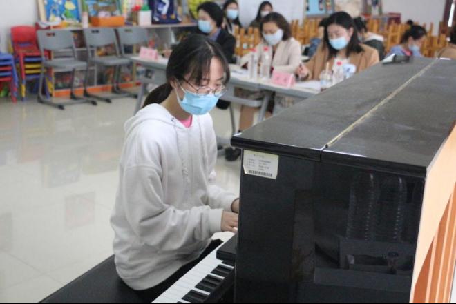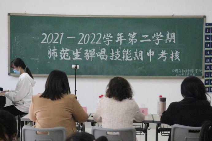 为进一步强化我院学前专业师范生专业技能训练,提升学前专业师范生弹唱技能、实践能力和综合素质,5月11日在我院tyc5997太阳集团教师教育楼16204、16205室组织开展了2021—2022年第二学期师范生弹唱技能期中考核。本次技能考核由教师赵新、孔亚琴、任锐、王一小、孙齐、李睿彤、刘冠男担任评委,全体考生与各班的线上观众参加。
