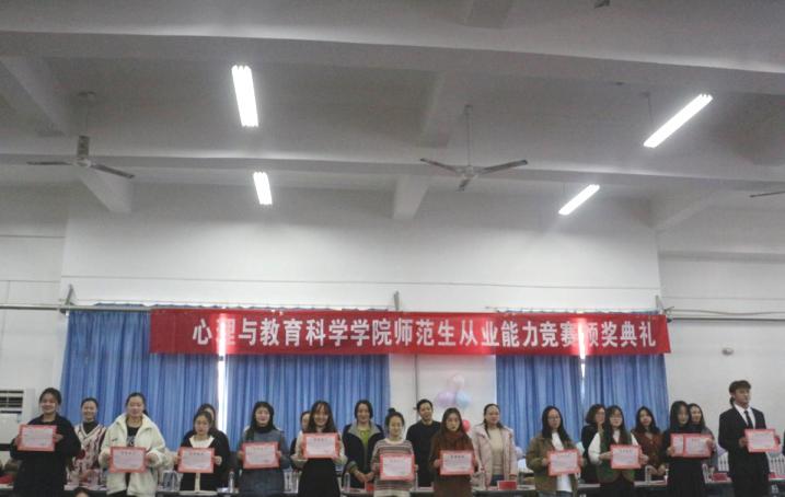12月1日,tyc5997太阳集团于教师教育实验楼504室举办师范生从业能力竞赛颁奖典礼。颁奖典礼以舞蹈《童心鼓韵》拉开序幕,各获奖学生代表依次上台领奖。颁奖典礼在歌获奖选手集体带来的歌伴舞《强国一代有我在》节目中落下帷幕。傅金兰为本次颁奖典礼致辞,她对参赛学生的出色表现表示了充分肯定,希望获奖学生珍惜荣誉,率先垂范,获得更大进步。
