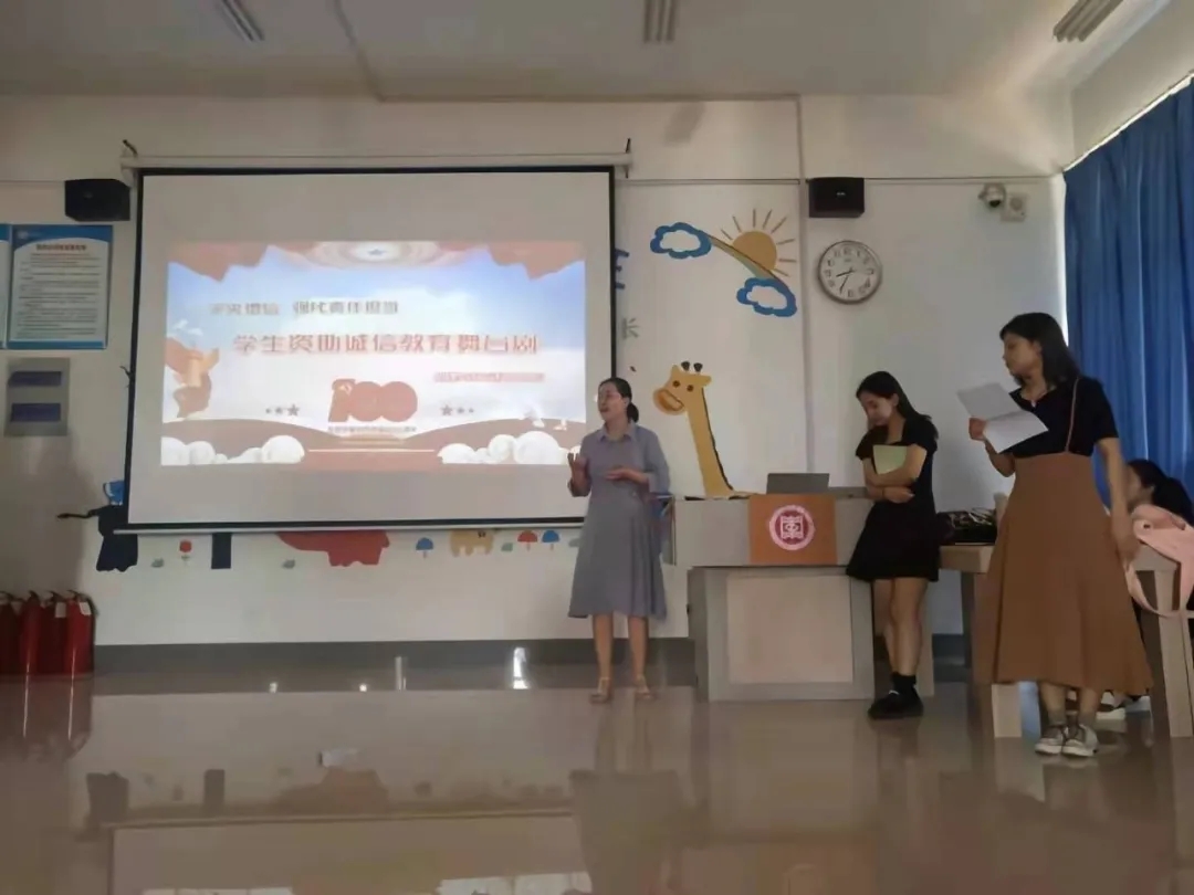此次活动以“诚实守信”为主题,以“立德树人”为主线,为同学们提供了一个讲诚信、懂感恩、有担当的平台。同学们表演了舞台剧——《迷失的“贷价”》,以独特的视角提醒在校大学生要树立正确的消费观和价值观,勿攀比,警惕不良校园贷,表演赢得了在场同学的热烈掌声。随后,张倩为同学们宣讲了关于征信的相关知识,普及了如何预防金融诈骗、电信诈骗和违法高利贷等知识,帮助同学们提高了征信意识、金融意识、风险意识及法律意识。