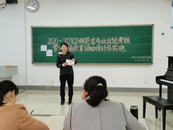 4月8日下午,我院于教师教育实验楼205室举行2020—2021(2)师范生专业技能期中考核——学前专业教育活动设计与实施,本次考核对象为2018级学前教育春本科班、2018级学前教育本科班、2020级学前教育专升本班学生。