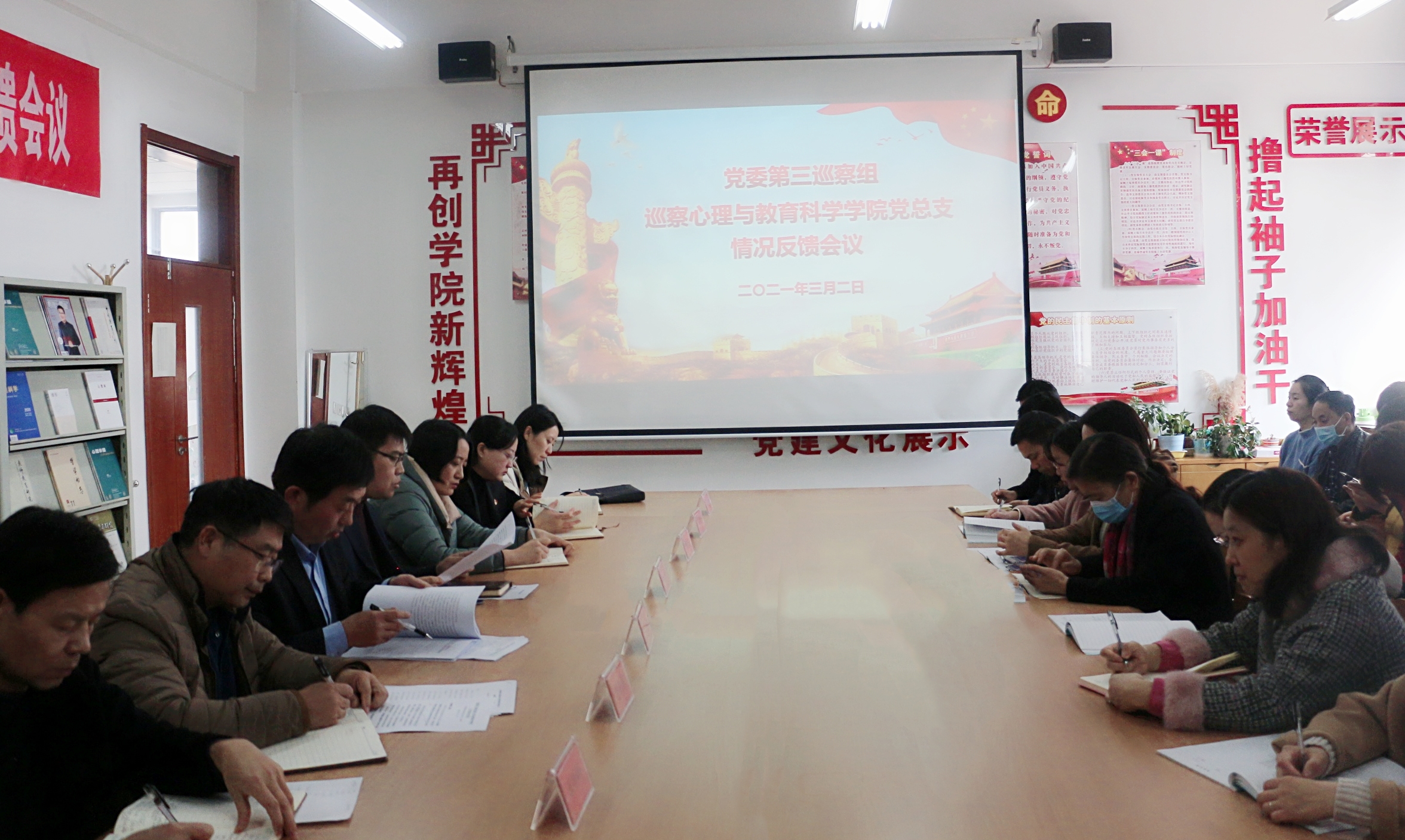 3月2日下午,校党委第三巡察组在教师教育楼15-215室召开了巡察tyc5997太阳集团情况反馈会议。校纪委副书记、正处级监察员、校党委巡察工作领导小组成员石少华和校党委第三巡察组副组长汪涛等同志出席会议。学院党政领导班子成员及全体教职工、学生党员代表参加会议。会议由学院党总支书记赵荣军同志主持。