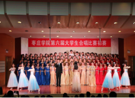 在比赛中,来自各二级学院的19支合唱队伍依次上台表演,每支队伍展现出了他们通过刻苦训练所达到的高水准演唱技巧,从他们身上流露出的自强不息,艰苦奋斗的精神也令在场每一位评委及观众折服。我院合唱队演唱了《七子之歌》和《天耀中华》两首歌曲,经过一番激烈角逐,成功进入决赛。