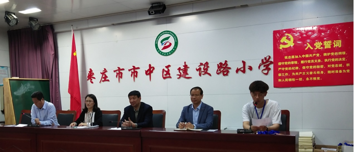 5月10日早上7:30我院师生乘坐公交车到达枣庄市市中区建设路小学(西校),在校门口排队测量体温后,有序进入校园。建设路小学对于我院师生的到来表示热烈欢迎,并为我院师生举办了见习开幕式。种道法校长、王锦彬副校长、胡安峰副校长、孙敏副校长以及小学各指导老师,我院见习带队教师徐愫芬和2018级小学教育本科1班42名见习学生出席本次开幕式。