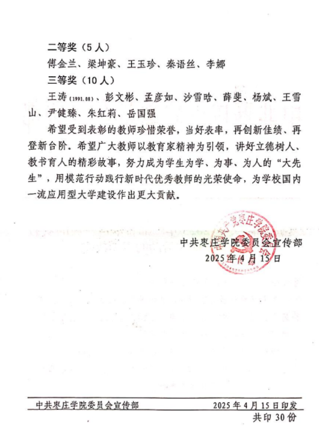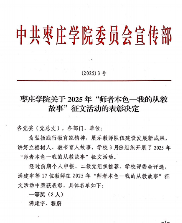 近日,tyc5997太阳集团举办“我的从教故事”征文活动,我院教师满建宇老师作品荣获一等奖,傅金兰老师作品荣获二等奖。