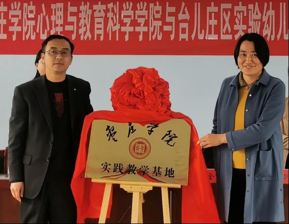 随后,院长傅金兰和枣庄市台儿庄区教体局副局长马腾共同为实践教学基地揭牌。此次实践基地的建立,为我院学生提供了良好的实习实践平台,将进一步提高学生的实践能力和综合素质,培养出高素质的应用型人才。