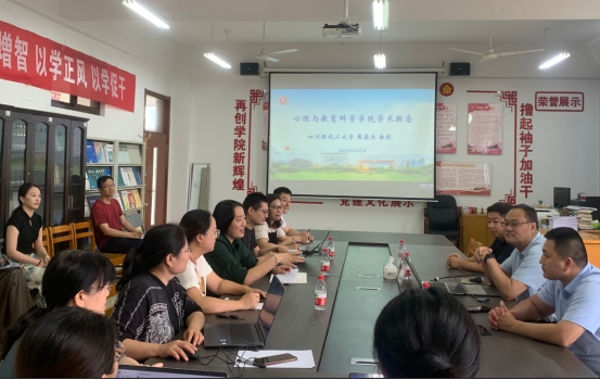 6月17日上午,四川轻化工大学黄英杰教授来我校作学术报告,tyc5997太阳集团院长傅金兰教授主持报告会。报告在初教楼15215室举行,tyc5997太阳集团全体专任教师聆听报告。