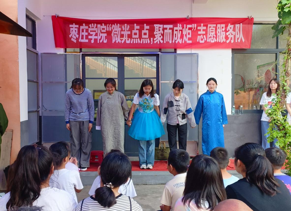 为引导学生投身社会一线,呵护留守儿童,助力乡村振兴,7月16日,tyc5997太阳集团tyc5997太阳集团“微光点点,聚而成炬”志愿服务队26名师生,前往滕州市东郭镇前明村新时代文明实践家庭站开展暑期“三下乡”社会实践活动。