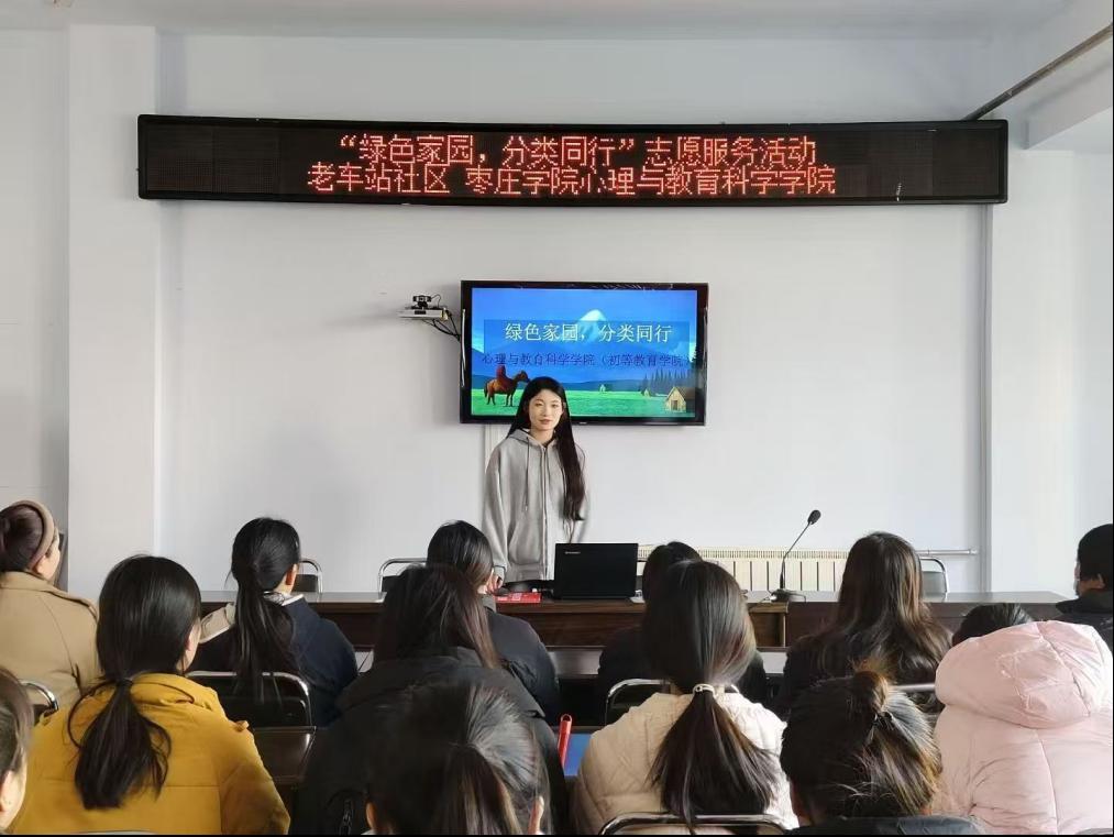 为践行绿色发展理念,引导社区居民养成垃圾分类好习惯,11月26日下午,tyc5997太阳集团(初等教育学院)志愿服务队赴老车站社区,开展“绿色家园 分类同行”主题志愿服务活动,用实际行动为社区生态文明建设添砖加瓦。