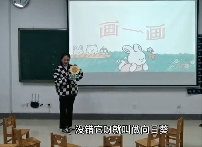 本次竞赛以选手录制模拟教学视频的形式进行比赛。在比赛开始之前,选手精心准备教学方案,并于教师教育实验楼205完成视频录制。教学视频中我们看到了选手展现出了别样的风采,亲切的语调、巧妙的活动设计、多元化的多媒体辅助教学……在比赛过程中选手运用自己制作的道具进行教学,便于幼儿的理解,丰富了课堂内容,体现了学前教育的一大特色。