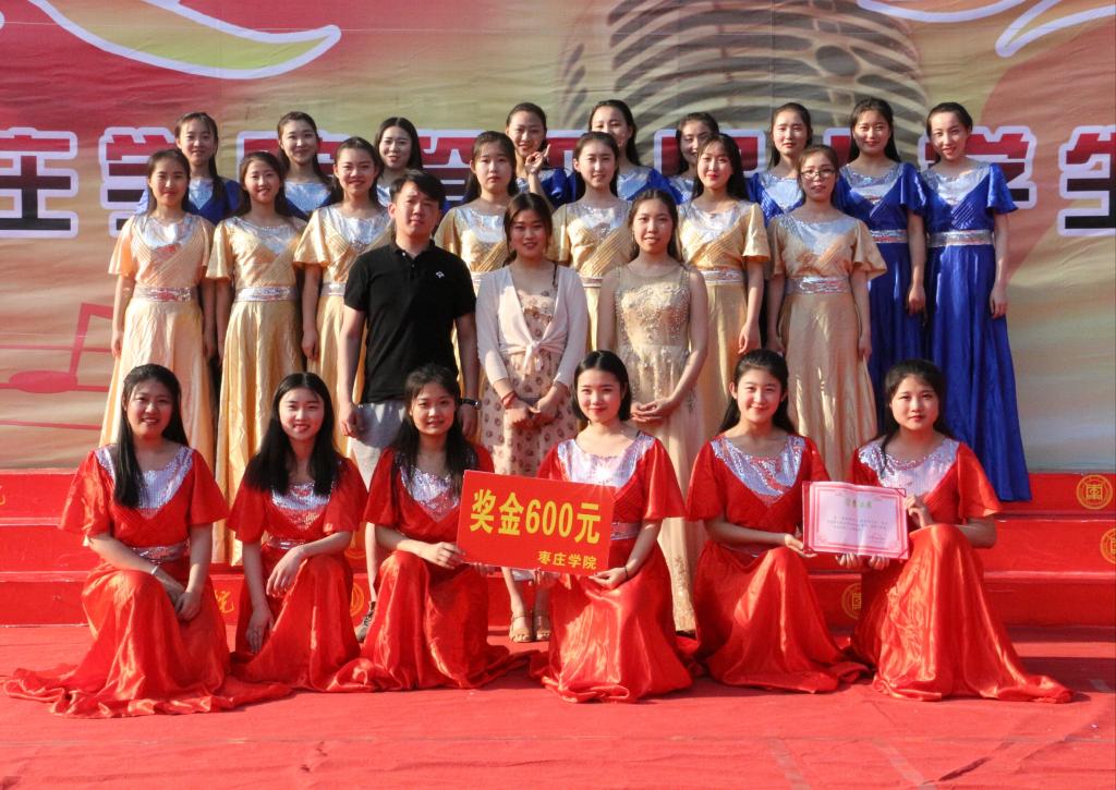 决赛现场,十一支合唱队伍进行现场角逐。大学生们用一首首满怀热情的歌曲,歌颂祖国,歌颂党,展现了他们对美好生活的热爱,传递着昂扬向上的青春风采。其中,我院合唱队带来了《今天是你的生日》和《阳光路上》两首歌曲。 “我们祝福你的生日,我的中国,愿你逆风起飞,雨中获得收获”唱出了对祖国的祝福,唱出了中华儿女心中期望的歌。第二首歌伴舞《阳光路上》表现了我院的专业特色,经过激烈的竞争,我院合唱队荣获二等奖的佳绩。