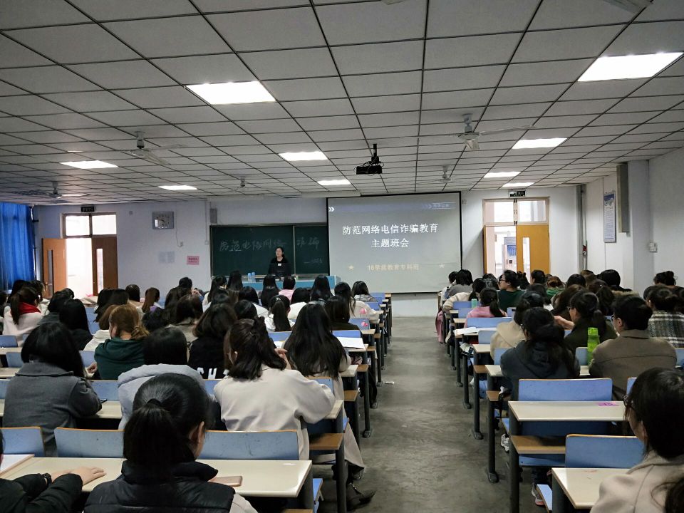 首先,各班辅导员在班会上讲述了网络诈骗的各种形式和危害以及被诈骗后的应对措施,教会了同学们如何识别防范电信网络诈骗。接着,同学们观看了防范电信诈骗的宣传片,视频中各种生动真实的案例让同学们对于诈骗的常用手段有了充分的了解,提高了同学们对于诈骗的认识。此外,各班辅导员与同学们还进行了防诈骗知识问答活动,同学们纷纷踊跃参加,从中获得了很多有关防范诈骗的知识。最后,各班辅导员总结了本次班会并告诫同学们:不管诈骗手段如何改变,一定要看清诈骗的本质!同学们听此纷纷表示:“在今后的日常生活中,一定会提高自我防范意识,如果遇到电信或者网络诈骗将采取坚决不理会或举报的方式解决。”
