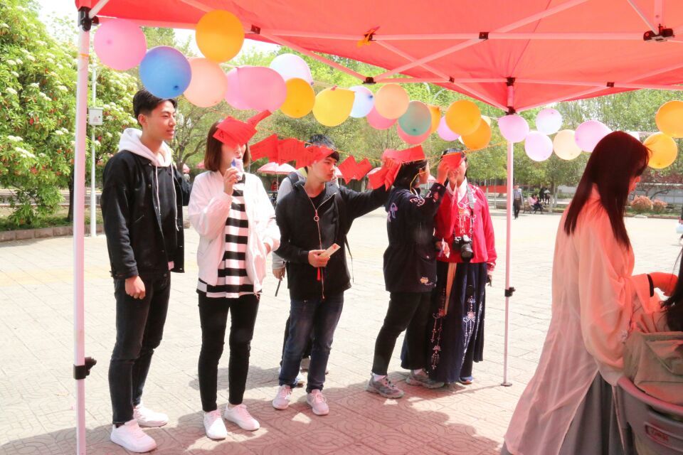 为开拓视野,丰富校园文化,落樱街动漫社于4月15日11:30-15:00在一餐前小广场举办了汉服花韵活动。