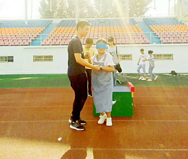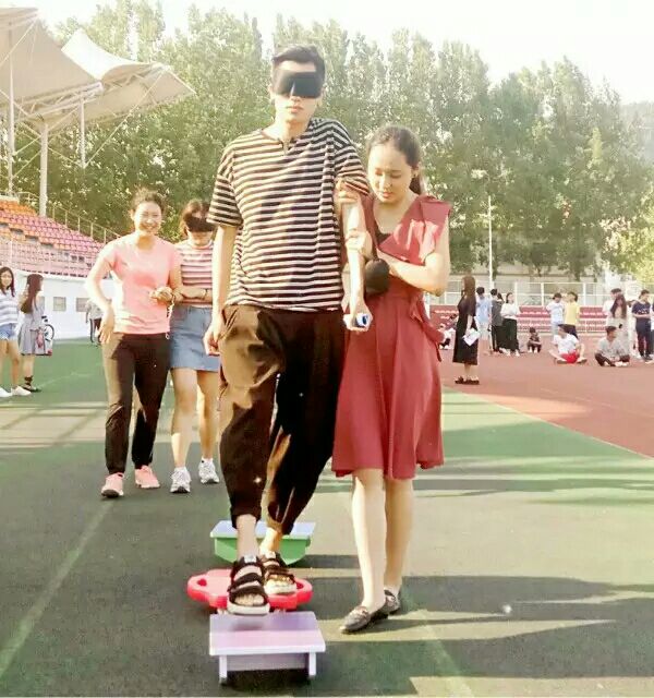 帮大学生们树立信任感,克服心理障碍。活动上,一男一女随机组成搭档,一人戴上眼罩,另一人带领其穿越重重障碍,沿着规定的路线,踏入信任旅途。到达目的地后,两人角色互换,重新开始“漫漫人生路”。公长伟老师做全程指导。