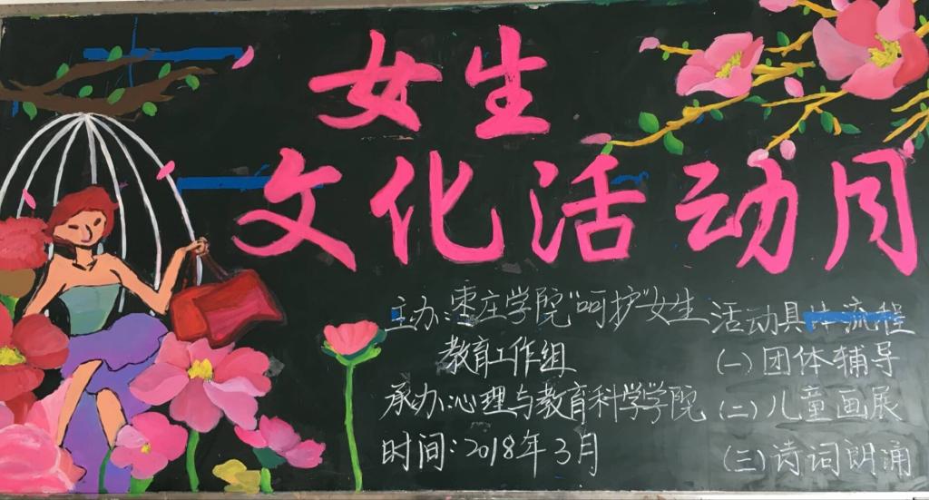 据了解,女生文化月活动是由tyc5997太阳集团“呵护”女生教育工作组主办,tyc5997太阳集团承办。该活动将从3月7日持续至3月28日,根据学院专业特色,分为团体心理辅导“你自信的模样好美”、儿童画画展“爱家的我们很美”和诗歌诵读“你读诗的样子真美”共三个部分。