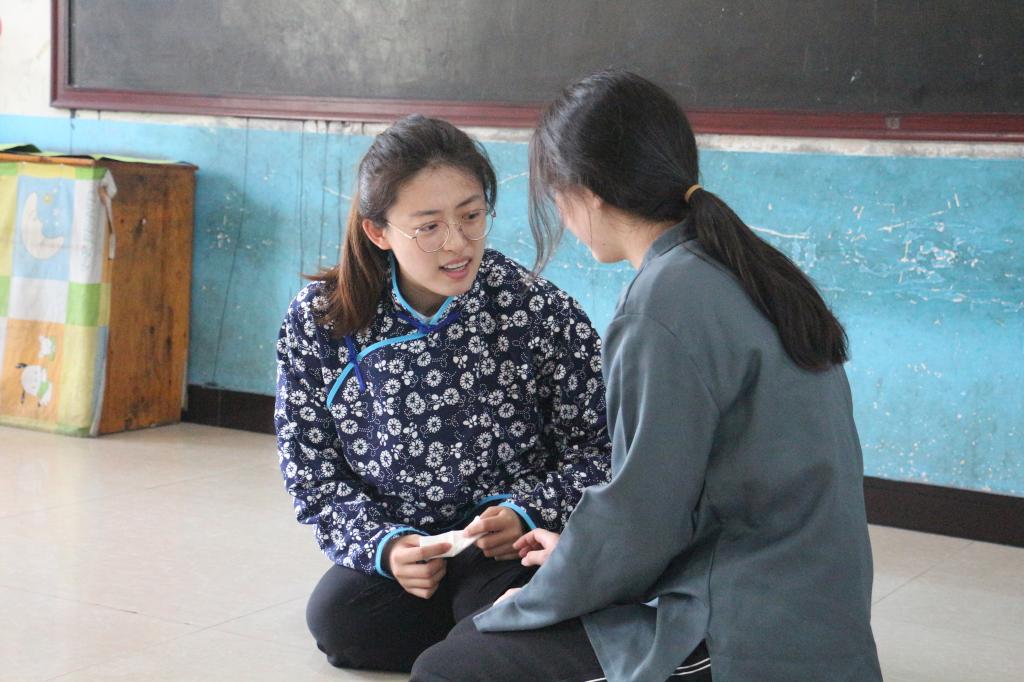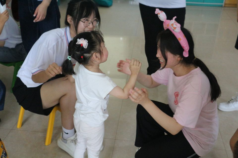 入园之前,志愿者针对普通话的普及现状进行了相关调查。入园后,志愿者们与老师交谈了解孩子们的日常生活,宋明峰与张玉洁为孩子们分发文具用品,与志愿者们一起陪伴孩子们绘画折纸并倾听他们的心声,为教育事业爱心助力。