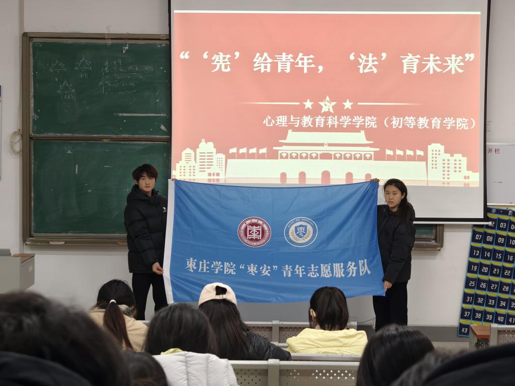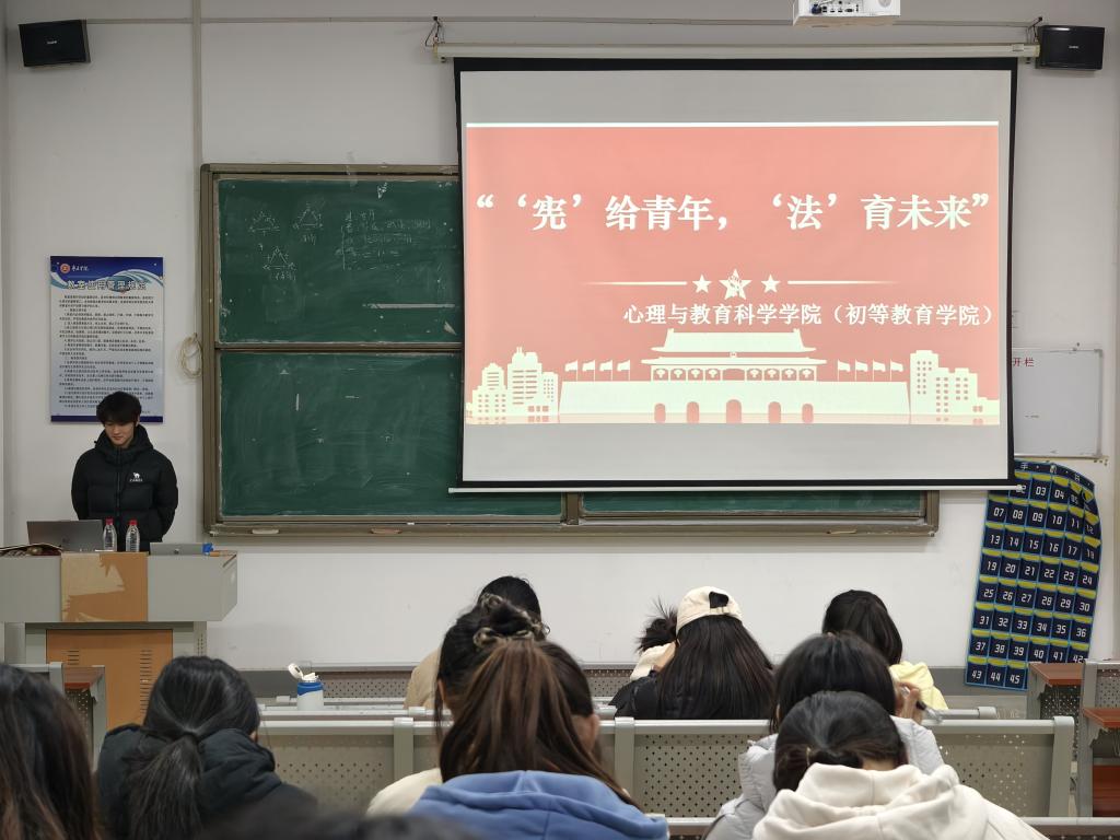 为深入贯彻落实全面依法治国基本方略,响应国家加强青少年法治教育的号召,进一步强化师生法治观念与法律素养,营造尊法、学法、守法、用法的浓厚校园文化氛围,tyc5997太阳集团(初等教育学院)志愿服务队于12月15日在教师教育楼15-216室开展“‘宪’给青年,‘法’育未来”宪法理论普及志愿服务活动,学院共计100余名师生参与此次活动。
