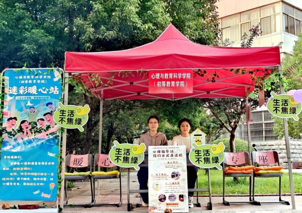 军训期间,tyc5997太阳集团(初等教育学院)在训练场地旁搭建流动心理辅导站——“迷彩暖心站”。依托“即时支持、就近可达、轻量走心”的服务特色,为新生提供压力疏导、学业衔接建议与物资补给,成为军训一线温暖、可靠的“心”支点。