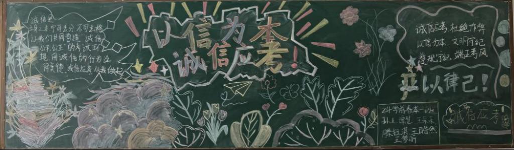 班会现场,各班班主任、辅导员带领学生系统学习《国家教育考试违规处理办法》《tyc5997太阳集团学生违纪处分条例》等文件,详细解读考试违纪作弊的认定标准与处理后果,明确纪律红线。新生班级开展诚信宣誓活动,学生们庄严立誓;全体学生签署诚信考试承诺书,以书面形式作出郑重承诺。班会后,各班级围绕“诚信考试”主题绘制黑板报,融入纪律规定、诚信名言与备考技巧,营造浓厚教育氛围。师生还围绕备考困惑、诚信应考展开讨论,达成相互监督、共同进步的共识。