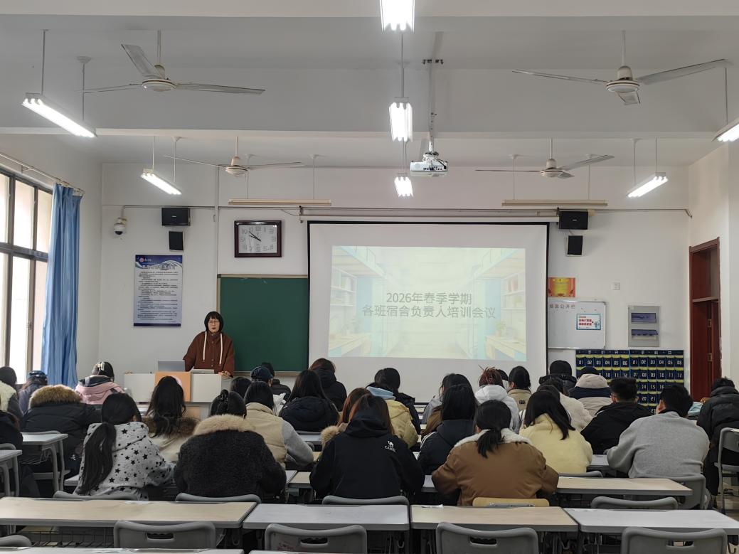 会上,杨娜老师围绕2026年春季学期学生宿舍管理的重点工作进行了部署与说明。在内务卫生方面,她强调了保持宿舍整洁、营造良好生活环境的重要性,要求各班负责人以身作则,引导同学们养成良好的卫生习惯。在宿舍安全方面,她重点对用电安全、防火防盗等事项作出提醒,要求各负责人加强日常自查与宣传,切实筑牢安全防线。此外,杨娜老师还就新学期宿舍维修相关事宜进行了说明,明确了报修流程与注意事项,确保同学们的生活需求能够及时得到响应与解决。