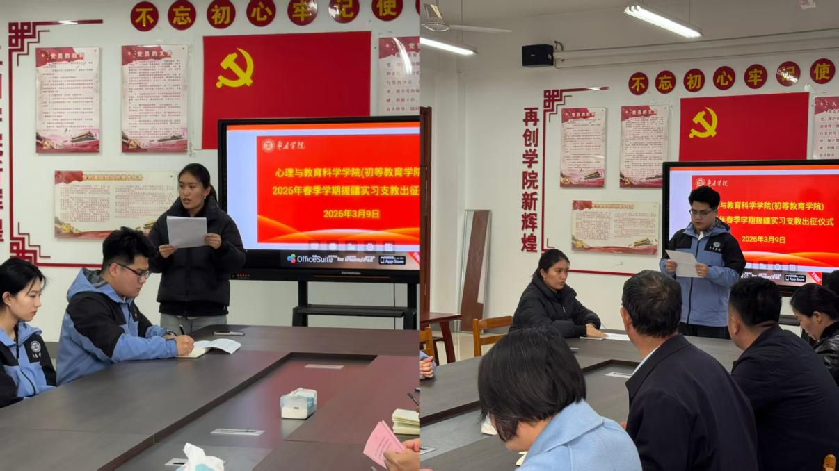 上一届援疆支教团代表朱子宁同学结合自身经历,分享支教工作经验与心得,为即将出征的队员送上真挚寄语,鼓励大家坚守初心、踏实工作,在实践中增长才干。本次援疆支教团团长米宝涵代表全体成员发言,表达了不负学校培养、圆满完成支教任务、展现学院学子良好风貌的坚定决心。
