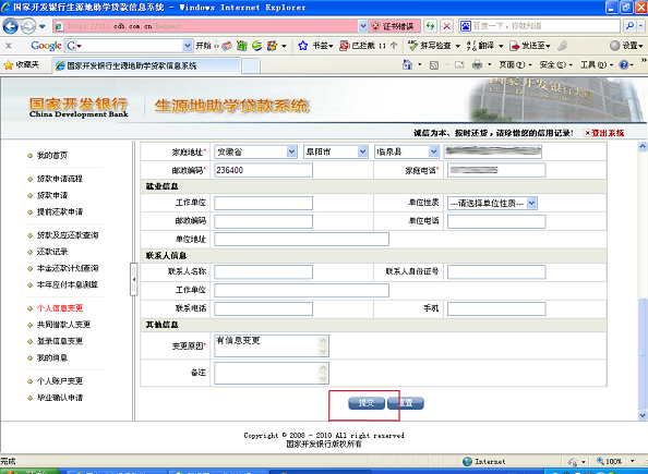 6、核对基本信息,必须补充工作(或实习)单位、单位性质、邮政编码、单位电话、单位地址等信息,并更改不准确信息(如已更改的电话号码及家庭地址等),然后点击提交。